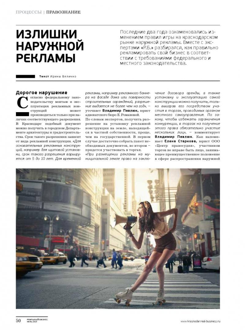 Публикация статьи "Излишки наружной рекламы" Павлюк В.А. в журнале Реальный Бизнес